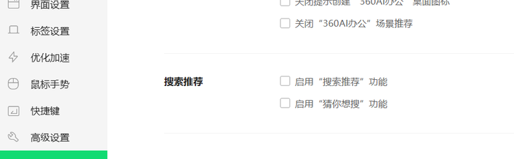 360主页搜索框的“猜你想搜”功能永远关不掉?在设置里关闭重启浏览器又开启?
